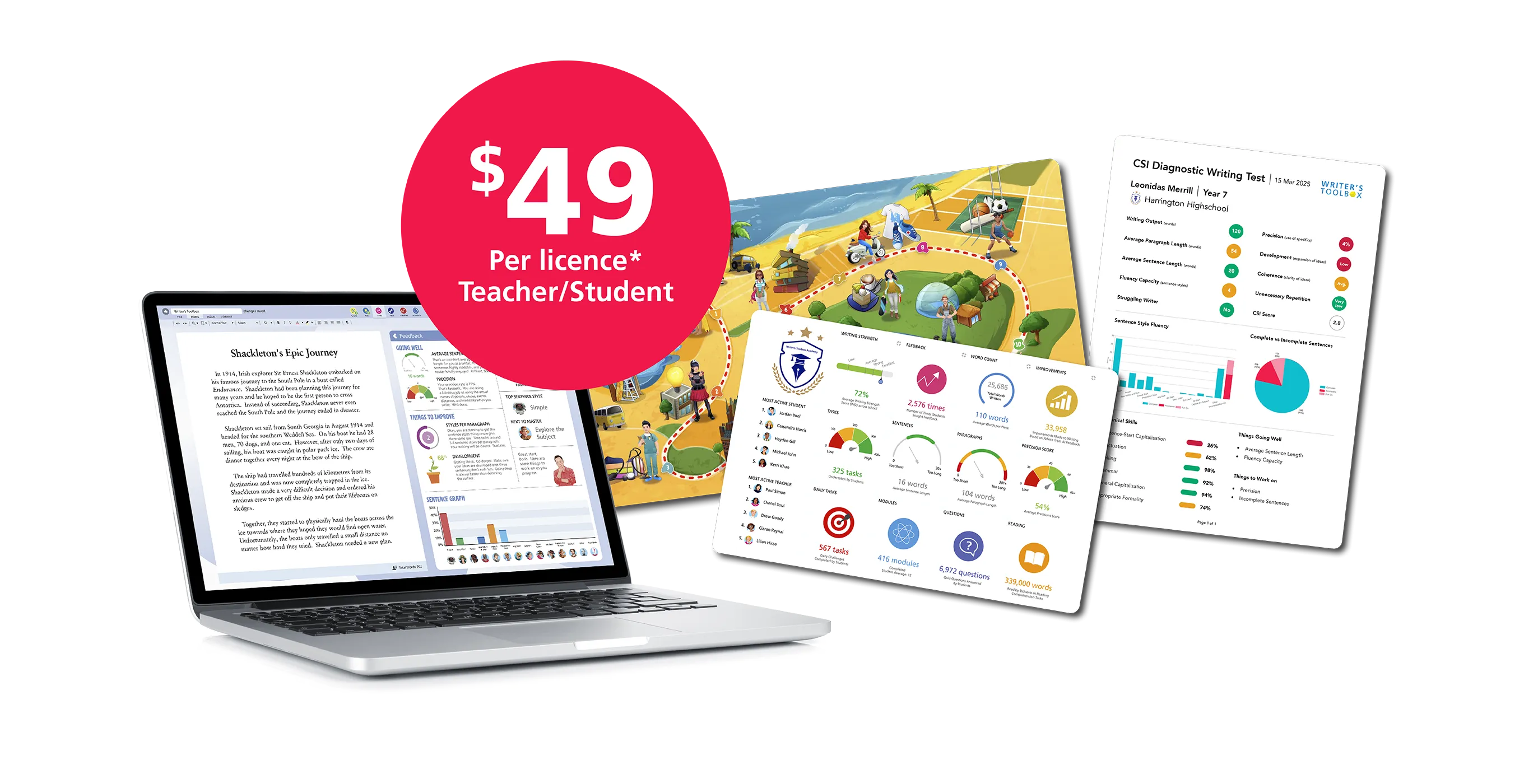 The new school year is busy enough. Your writing improvement strategy shouldn’t add to the chaos. Get your students and teachers started on the right foot with our new licence price that comes with everything you need for writing success, including a Diagnostic Writing Test and Report.