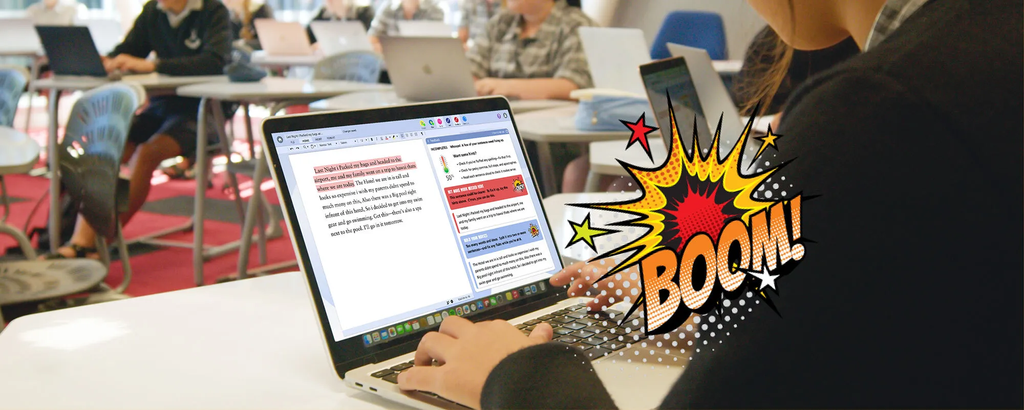 Incompletes will change the editing game for you and your students. This feature highlights exactly which sentences students need to fix—grammar, spelling, punctuation—but it doesn’t do the fixing for them.